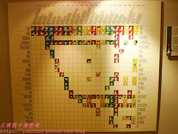 ↑這個畫板紀錄丁丁歷險記問世以來的歷程,可以看到人物角色的微妙變化,還有主要人物們是在哪一年的作品中誕生的。