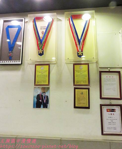 ↑另一面牆上則是掛著各種獎章以及感謝狀。