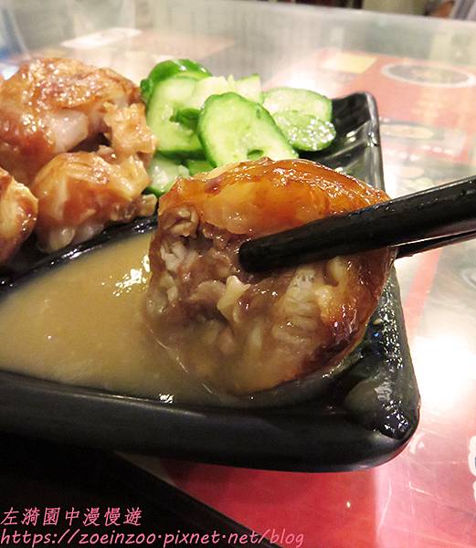 ↑雖然肉捲已經很有味道了,加上甜甜辣辣的沾醬微辣的口感更棒。只是這道料理真的不適合搭配味重的魯肉飯,如果此刻還吃得下,真想要再要一碗白飯。不過,起碼下次有機會再來時,知道該怎麼點囉!