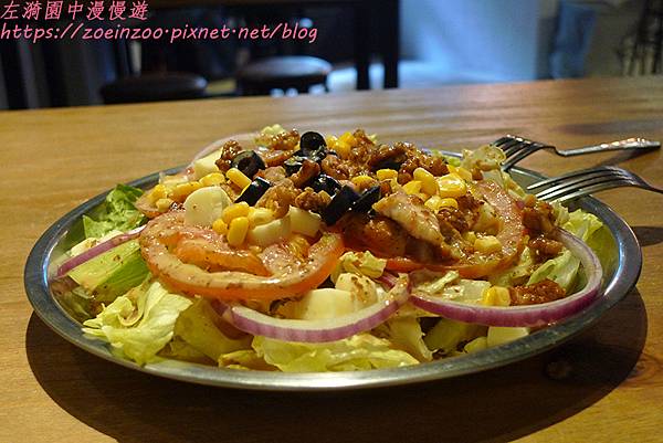 ↑沙拉裡面有很多黑橄欖和胡桃,非常令人開心,有了這兩樣東西就會覺得這沙拉等級上升不少。非常推薦對自己好點,奢侈多加雞肉丁和馬茲瑞拉起司丁。店家會很大方地給很多,不是只是意思意思而已喔!是每一口都能吃到不少雞肉丁和起司丁的程度。喜愛和風醬的左漪原本有點擔心和風醬和起司不搭,結果超清爽好吃的啊!我大大大的推薦這裡的沙拉,減肥的時候點這個來吃就非常有滿足感+飽足感。