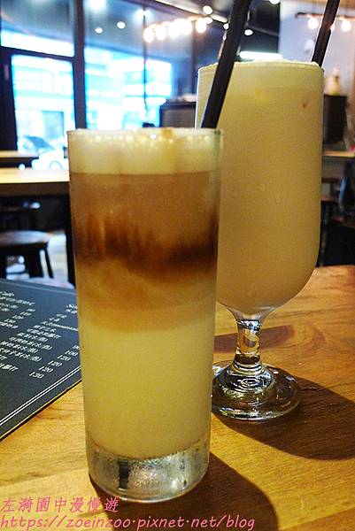 ↑左邊這杯飲料是冰調味拿鐵(榛果),130元。裡面已經有加糖,微甜。右邊這杯特調奶茶,100元。雖然沒有珍珠,卻會讓人誤以為是在喝濃郁珍珠奶茶的調味配方,個人還蠻愛的啊!
