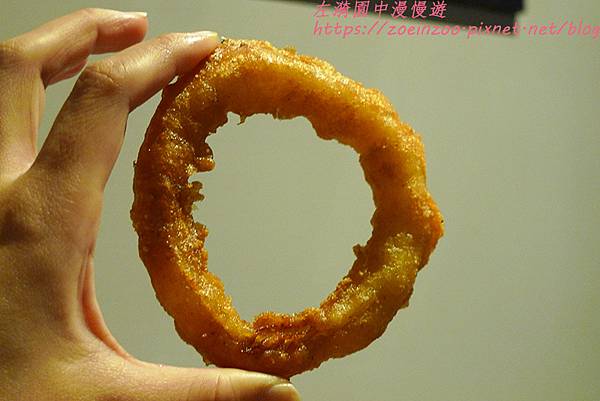 ↑自製洋蔥圈真的是無敵大圈,足夠可以當女生手環的尺寸!洋蔥香甜、外衣炸得非常酥脆,卡滋卡滋!