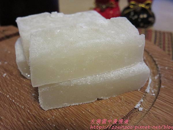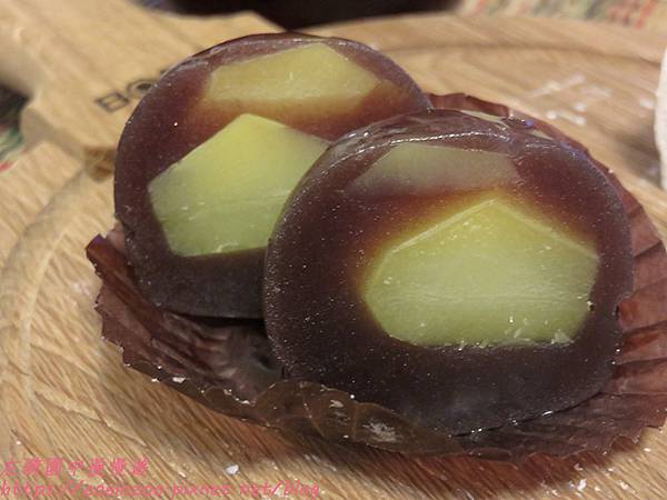 ↑這甜點有個很有畫面意境的名字,但店員冷冷地說:「朝雪就是香蕉飴。」喔!喔!一聽她如此說馬上加點了這個,左漪個人很愛香蕉油的味道,好奇日式甜點店裡賣的台式甜點到底味道如何。一般販售的香蕉飴大多切成小塊狀,這裡是一大塊的,視覺上反而顯得比較具高級感XD