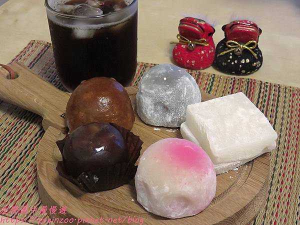 店家有附一張食用說明書,裡面有提到品嘗方法,寫到和菓子與日本茶密不可分,可以黑咖啡代替茶。所以我也遵照著說明書指示,弄了一杯冰黑咖啡一起搭配,和菓子的甜味都很直接,口感上會覺得比蛋糕甜許多,搭配略苦的黑咖啡好速配。