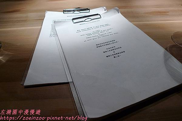 ↑菜單的設計也是非常機能性,列印出來夾上夾板就可以了,不要的菜單也是抽掉即可,真是非常機動性超高又節省成本資源。記得知名的好樣餐廳系列的菜單好像也是像這樣的,不知道他們互相有沒有關係?