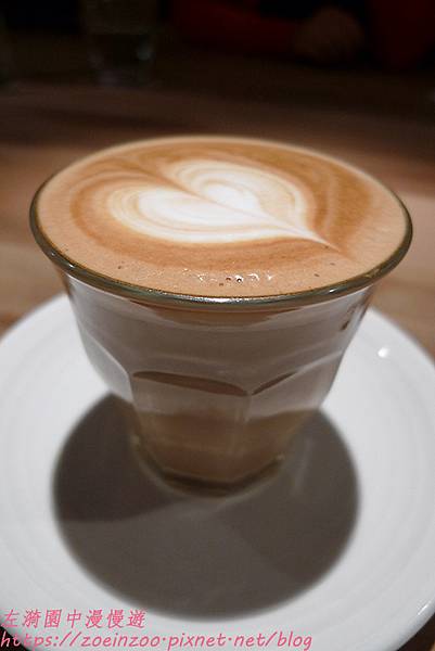 ↑牛奶少一點咖啡,110元。這裡的咖啡菜單非常有趣,可以直接選擇牛奶少一點或者是多一點,又或者是泡泡少一點,將大家的龜毛需求列表在菜單上,可以免去口頭的特別交代。畫著愛心的熱咖啡大約是水杯的大小而已,送來時大家都忍不住抱怨有點小杯,作為飯後飲料來說還好,若是當下午茶的主角咖啡的話,可能就不夠了。