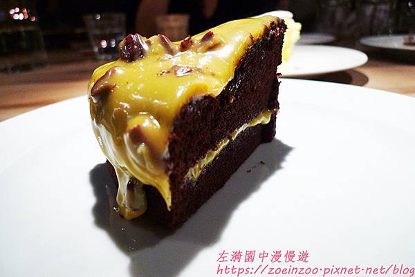 ↑德式巧克力,150元。海面蛋糕濕潤柔軟,搭配卡士達醬、和蛋糕上的碎核桃,張大嘴一起入口,非常好吃。
