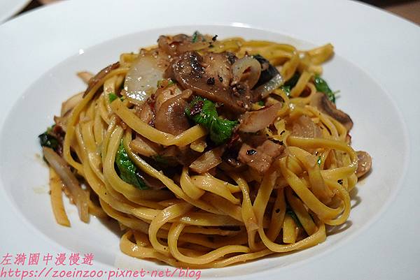 這義大利麵選用的是寬扁細麵,感覺有中式炒麵的fu~重口味的一道。