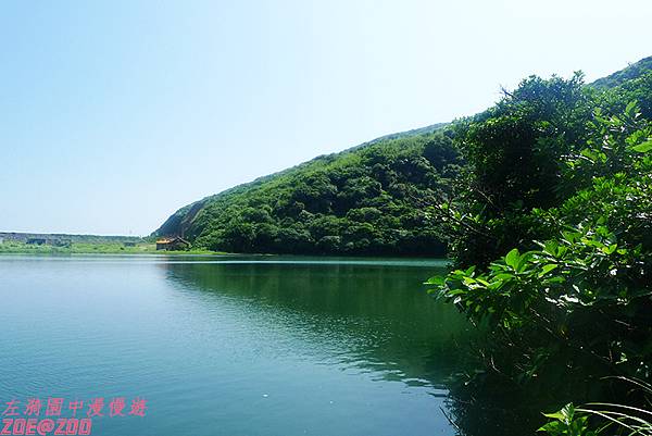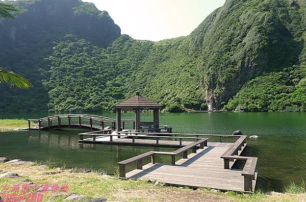 ↑島上的龜尾湖水遠望濃綠沉靜,湖邊淺灘底的石頭卻清晰可見,忍不住大喊「這湖水也太清澈了吧!」,感覺住在這裡的鴨子們好像也活得比較健康自在哩!沿著環湖步道走一圈,鮮麗花草樹木圍繞,綠湖綠山相連,真的有走在綠色人間仙島的感覺。