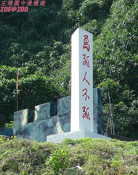 ↑人間仙島的另一端卻立著「島孤人不孤」的立碑,不知道豎立這五個字的原意為何?從字面上的意思看來應該是指“人在這孤島中也不孤單”吧!可是不知道為什麼,這文字中透出曾經駐守在此的軍人們濃烈的寂寞孤單感,而且在撤軍多年後仍然殘留此地,久久不散,讓路人我也覺得淒涼起來……