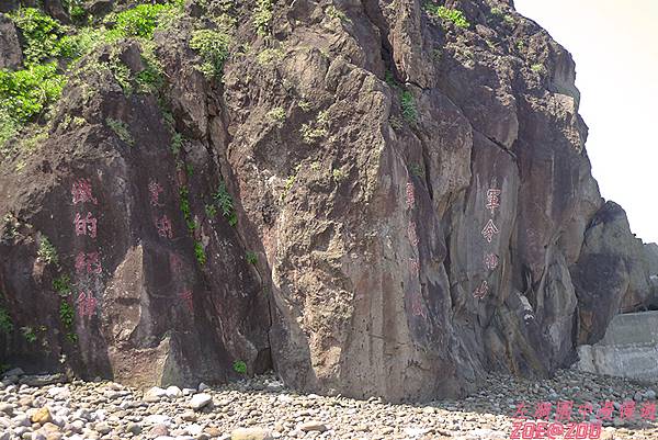 ↑石壁上的鐵訓軍命依然不動如山,但對大部分的人來說已不是嚴厲的教條,而是風景的一隅。軍事遺址成了龜山島天然景觀外的另一特色,說也奇怪卻不那麼的令人厭惡,反而增添了神祕肅穆的色彩,艷陽天裡走在軍事坑道中仍然令人不寒而慄。