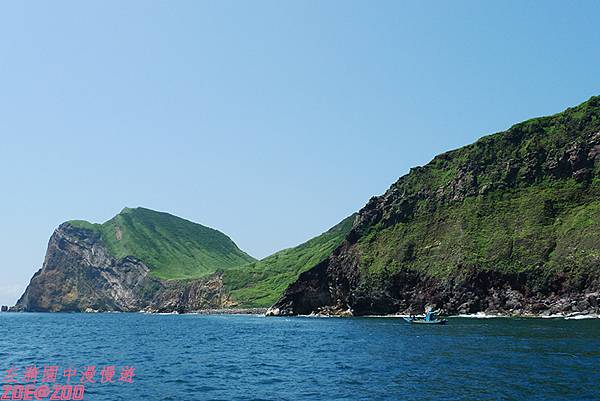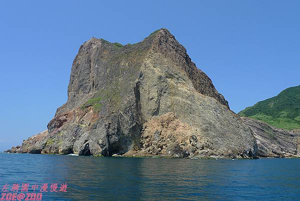↑龜山島著名八大美景之一「眼鏡洞鐘乳石奇觀」,據說洞窟裡保有原始的鐘乳石,並住著一種高溫硫氣下也不會被煮熟的神奇螃蟹,但是…距離那麼遠什麼也看不到啊!