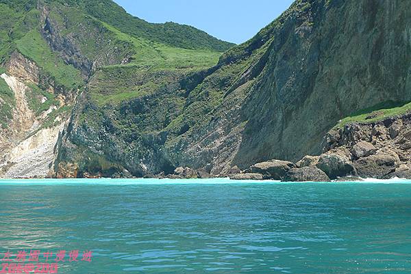↑靠近島緣的海呈現淺淺的綠色,是硫氣噴出的源頭。