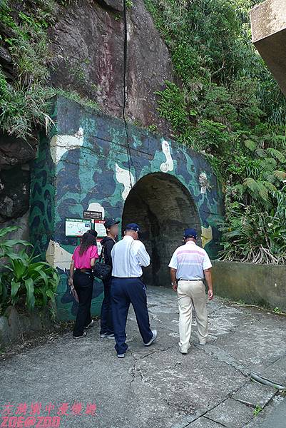 ↑身著迷彩的軍事坑道入口處。