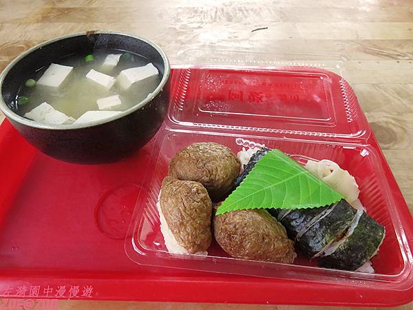 ↑味噌湯,20元。綜合壽司,40元(本文中的餐點價格為2015年當時)。這樣一頓份量十足的早餐價格很實在!綜合壽司裡海苔捲和豆皮份量各半。