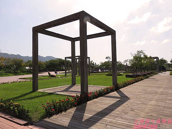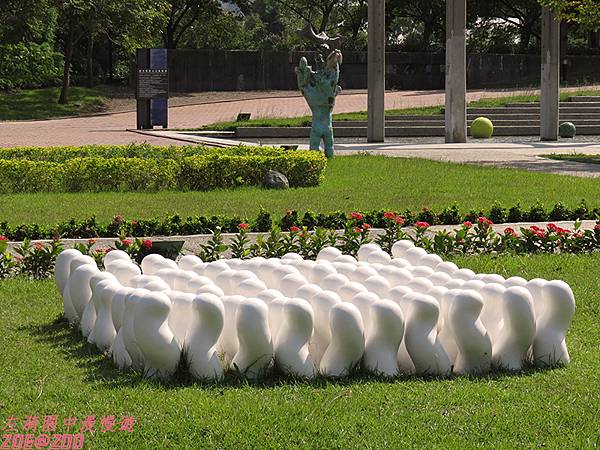 ↑參觀完裡面的展品,來到博物館後面的藝術園區,回頭看一下博物館建築的背面,還是覺得很有特色。而且這棟建築物是台灣的知名建築師簡學義設計的,真心覺得台灣建築師也不輸給國外的啊!!