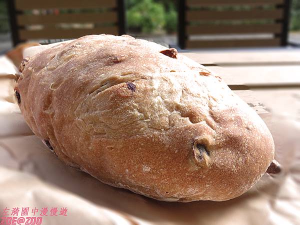 ↑看得到不少的核桃和葡萄乾,料多實在,還有柴燒窯烤出來的微微木香。原本以為會很需要嚼勁,沒想到這個Q彈緊實的口感卻很好入口,對於我這種“玻璃牙齒”無法吃硬東西,又愛吃鄉村麵包的人簡直就是理想中的麵包XD