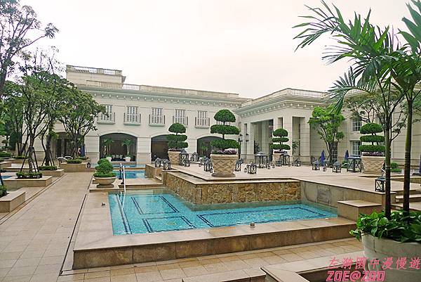 ↑庭園角落的一個美麗水池。水池兩邊都有按鈕,是個按摩水療池,左漪試著將腳伸進去試試水溫,一碰到水就立刻放棄入水的打算!冷啊~~~