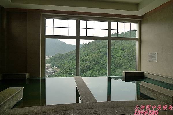 ↑前面提到瓏山林度假飯店週遭沒什麼大自然風景可看。唯一我覺得比較有看頭的是要額外付費才能享用的裸湯,可以眺望蘇澳港和蘇澳小鎮。但如果你害羞不敢泡裸湯或者不想額外付費,有一個地方是可以免費欣賞到這景色的,就是和裸湯屬於同一樓層的休閒大廳。晚上左漪一行也有來這大廳,想說會不會有什麼夜景可瞧,但是因為玻璃的反光,只看到得我們自己的倒影,什麼也看不見。但隔天一早來參觀裸湯時,才發現玻璃外就是蘇澳港哩!