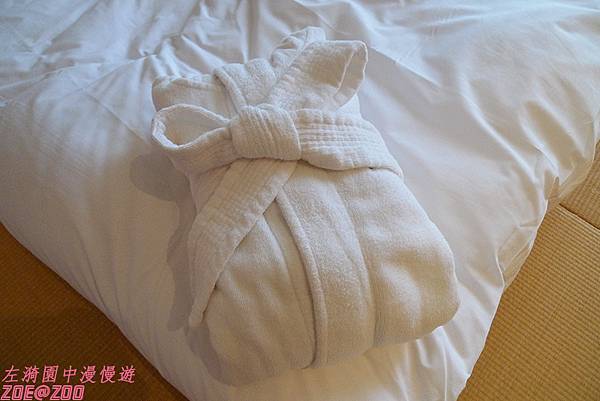 ↑每張床上都擺著浴袍。