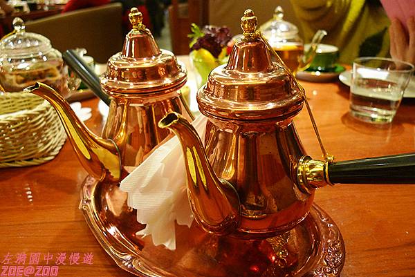 ↑歐蕾咖啡,150元。送上桌來的時候,嚇了一跳,以為是什麼茶品送錯桌了,這個完全看不出來是那個我熟知的的歐蕾咖啡啊!原來米朗琪是將咖啡和牛奶分別裝在這兩個很像阿拉丁神燈的特製銅壺裡,讓顧客自己調和咖啡與牛奶的比例,做出自己滿意的歐蕾咖啡。而且壺裡的咖啡和牛奶的分量也很足夠,像我都是以1:1的比例調和的,這樣可以喝到兩杯多。(本文中的餐點價格為2013年當時)