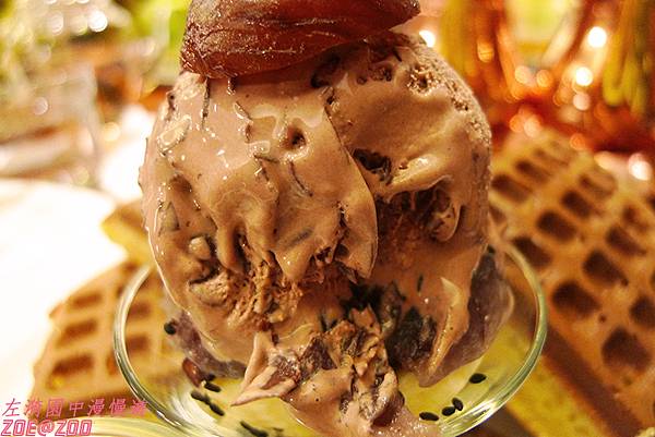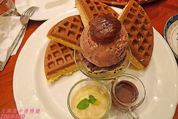 ↑巧克力冰淇淋裡面加了很多巧克力碎片,讓冰淇淋的口感更豐富,雖說這冰淇淋單吃有點甜,但配上熱呼呼的原味奶香鬆餅剛剛好。