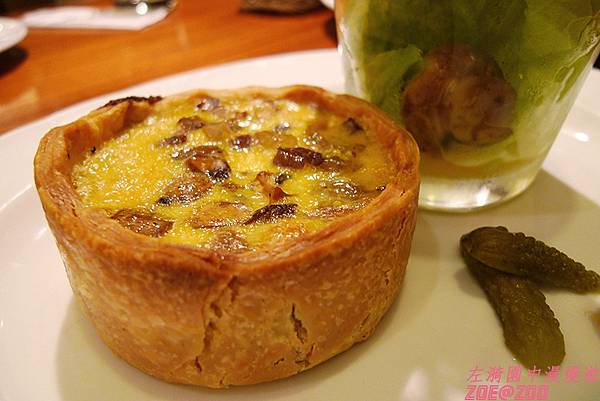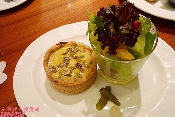 ↑栗子雞肉鹹派,180元。這是同行的真姨點的,因為她不喜歡吃甜食所以點了這個。鹹派有附一小杯沙拉,和一點點的醃菜。