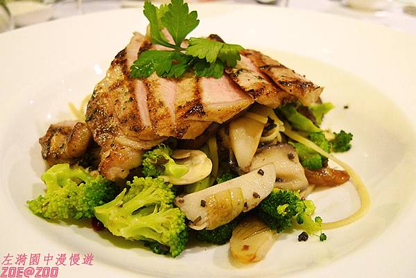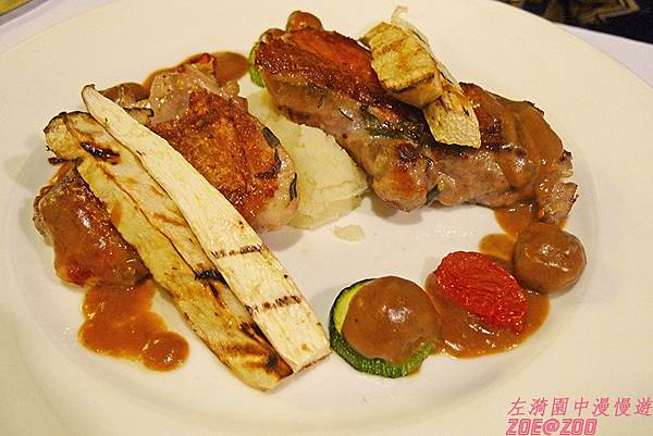 ↑迷迭香風味放山雞佐焦糖栗子醬汁,單點550元。這裡排餐類餐點550元起跳,也有提供近一千元的牛排。和義大利麵比起來份量沒那麼多,但口感還算精緻,帶些微甜味的醬汁很特別。