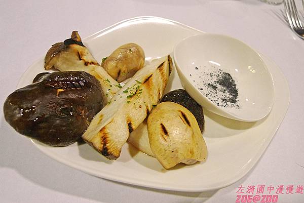 ↑綜合野菇,單點80元。燒烤過的野菇配上黑鹽,享受食物原始的美味。