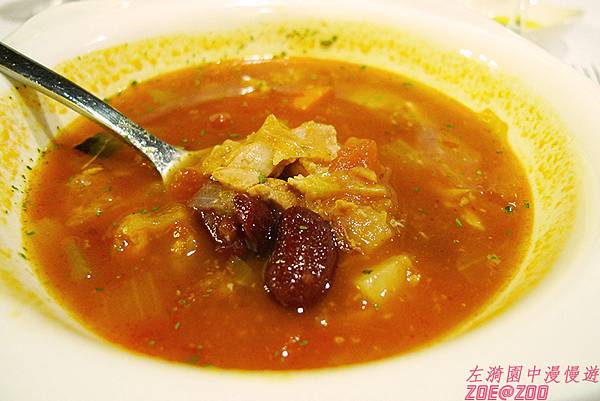 ↑義式海鮮湯,單點90元。看起來比蔬菜湯清澈,但其實味道也很濃郁,裡面海鮮配料也不馬虎。