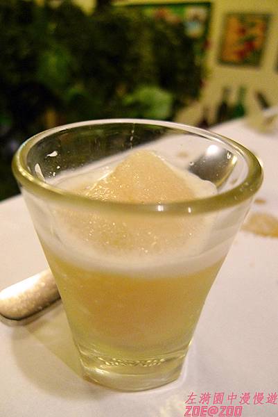 ↑冰沙。小小一杯,在此時登場,是要讓我們在主菜前漱漱口,清理一下味覺的吧!?