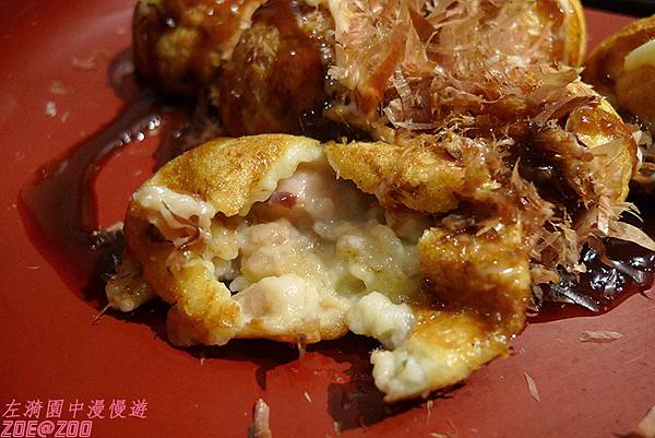 ↑還好我吃過的章魚燒數量雖然遠遠還不比過的橋多,但也超過百顆啦!憑著記憶自己加了店家特製醬汁、淋上美乃滋(因為個人不愛,少少就好)、再撒上柴魚片,就跟記憶中的章魚燒差不多啦。對了!不知為何,我總覺得這裡的小丸子形狀特別圓,特別完美說。