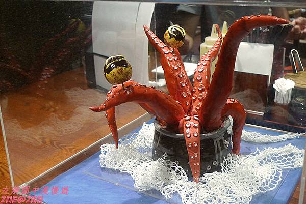 ↑餐後付帳時,看到其中一張桌上有這個奇妙的擺飾品,章魚腳上插著章魚燒,這…不見血卻有點血腥味耶!還是說這隻章魚這在奉獻自己,奉上一顆顆的章魚燒呢