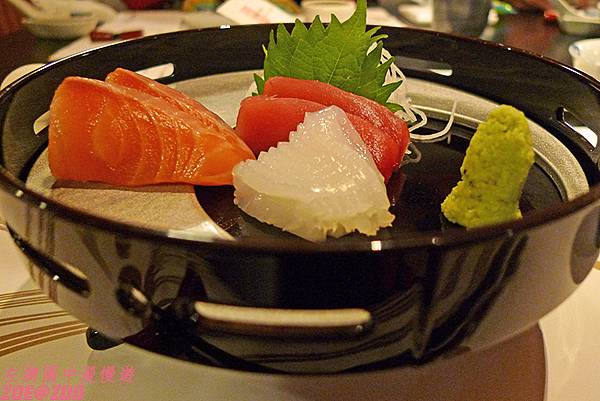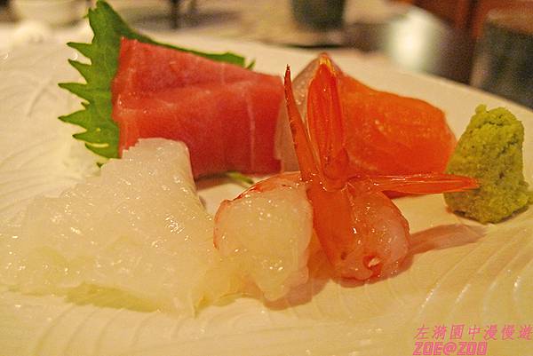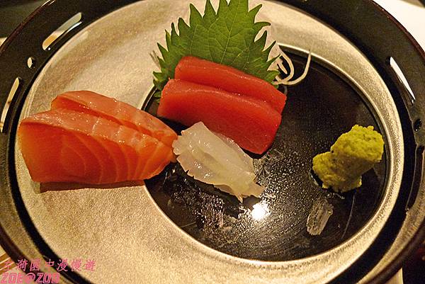 ↑綜合生魚片,有兩片鮭魚、兩片鮪魚和幾條烏賊。個人極愛吃沙西米,會覺得這份量有些不足,魚肉還算新鮮有彈性。