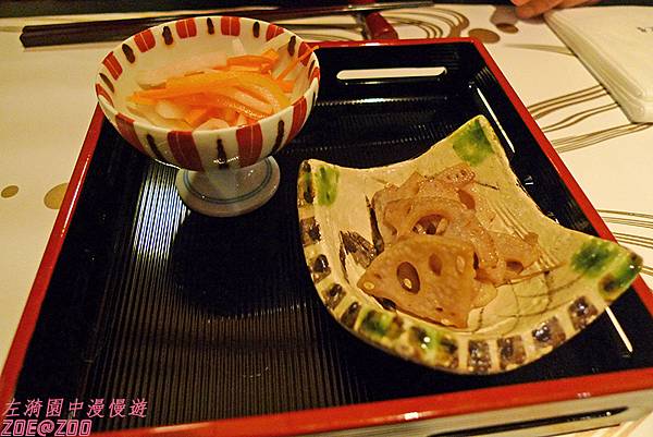 ↑1. 先付。紅白柚子生醋、清炒蓮根牛蒡。