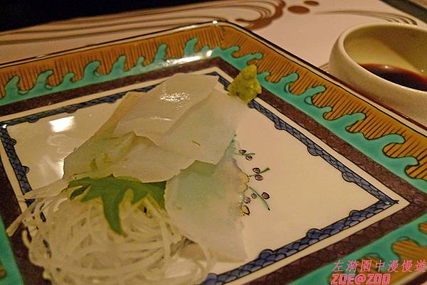 懷石料理貴聳聳,我沒有吃過幾次,不敢評斷這裡的是否正統道地,但在「天翔餐廳」整套吃下來,除了環境氣氛不夠外,還真有吃正統日式懷石料理的fu。每道料理的食器都是精心搭配、每樣料理也都精緻小巧。每道料理份量不多甚至只有幾口,其實整套全部都有吃的話也可以滿足空腹的。一開始很擔心吃不飽一直碎碎念的左爸,沒想到最後也有點吃不下呢!喜歡欣賞食器的左媽則是從頭到尾不斷讚嘆這裡的食器,直稱這些都是藝術品。