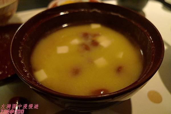 ↑9. 汁。味噌湯!配料是朴蕈和豆腐。這是和季節御飯一起送上來的,但我沒有拍到飯。接下來還有綜合漬物和季節水果,這兩道和葷食的一模一樣,請參考葷食套餐的分享喔!