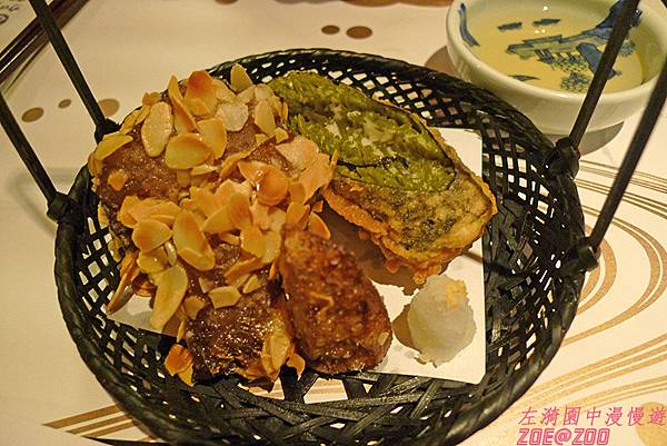 ↑7. 揚物。蕎麥磯邊湯葉揚、海老芋吉野揚、木耳杏仁揚。左媽很喜歡杏仁,所以對木耳杏仁揚讚美有加,但對蕎麥磯邊湯葉揚的評價就不高了。連續幾道炸物,可能開始有點膩了吧!