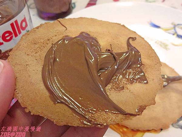 重點是,那回在法國,左漪人生第一次嘗過nutella可麗餅後,就完全成為nutella的奴隸了。我本來就是金莎巧克力的鐵粉,而這nutella就是金莎裡面的靈魂主角“榛果可可醬”啊!