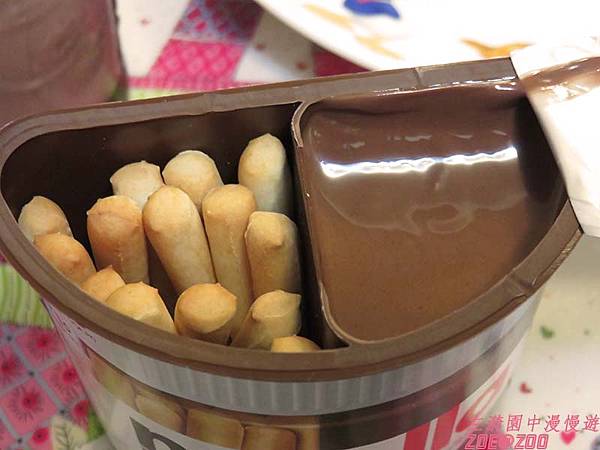 ↑這道就是“麥芽蘇打餅乾沾可可醬”(可以稱為一道嗎?XD),就是模仿隨手杯一樣的吃法。