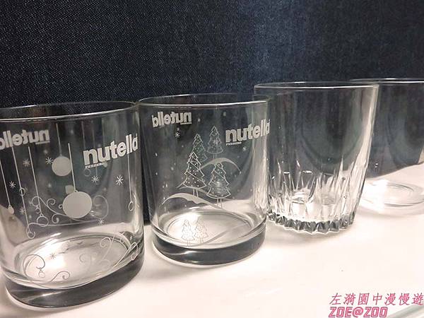 ↑我非常喜歡可可醬的包裝。可可醬用完了以後,可以保留它的玻璃罐。個人覺得當果汁杯、梅酒、威士忌杯最適合,也可以當作家中來客用的水杯,大小剛剛好。左邊那兩個是去法國旅遊時買的聖誕節限定包裝,上面有彩球或者是聖誕樹的印花,聖誕節拿出來用超有聖誕氣息的。右邊數來第二個是較早之前在全聯買到的,下面有切割雕紋,當酒杯用很有質感。