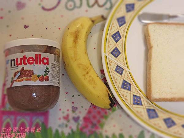↑在法國吃到nutella可麗餅就是有加香蕉的,香蕉和巧克力醬是絕配這件事不用多說,香蕉和nutella更是天作之合。自己當然是沒能力做可麗餅啦!但是放在吐司上一樣好吃。材料只需吐司、香蕉、nutella。