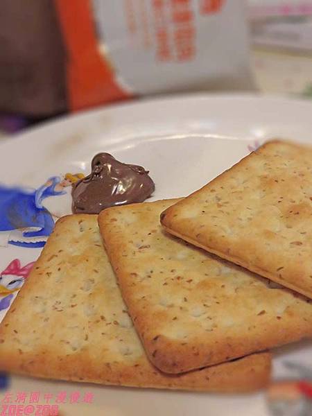 ↑麥芽蘇打餅乾跟能益多隨手杯的麥芽麵包棒有異曲同工之妙。一包三片搭配可可醬就能讓我當一頓早餐。