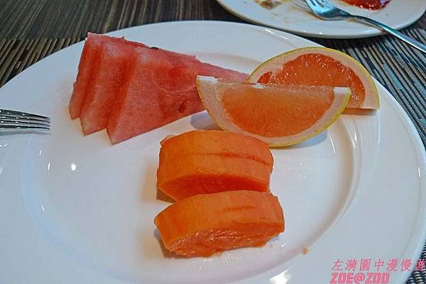 ↑左漪的早餐集錦三:一小盤水果。今天早餐吃得還算節制,因為等等我要帶難得來台北的左媽去「米朗琪」吃她愛的鬆餅,策略性保留一些肚子空間。