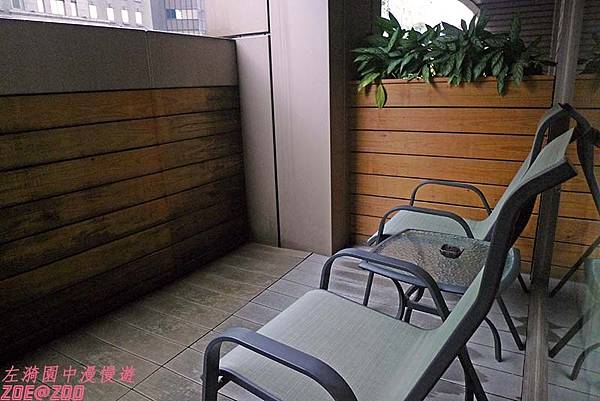 ↑房間外的陽台上放著兩張椅子,但是略高的半牆外就是車水馬龍的復興南路,眼前只有定時經過的文湖線捷運和對面大樓反光的窗戶,實在沒有什麼好欣賞的,除非你無聊到想要數每一小時有幾班捷運經過。