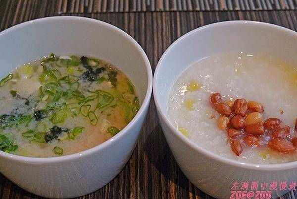 ↑左漪的早餐集錦二:日式味增湯配台式稀飯。