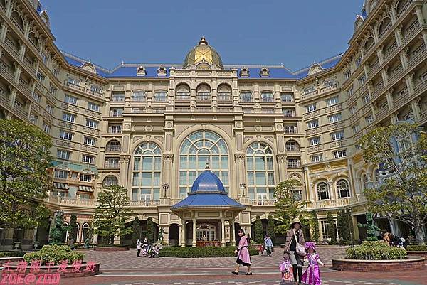 ↑東京迪士尼樂園大飯店的正面外觀,顏色設計有仙杜瑞拉城堡的fu~。