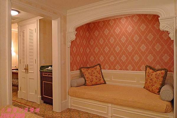 ↑個人覺得迪士尼樂園大飯店最厲害的是,他們不是將整間飯店裝潢的五花八門、眼花撩亂的卡通風格,而是將空間設計得很像城堡般精緻古典浪漫,然後巧妙的將專屬於迪士尼的可愛卡通元素用低調卻讓人能注意得到的方式呈現出來,所以不只是小孩,喜歡浪漫唯美風格的大人也會很喜歡這間飯店,但是你又隨時隨地可以感受到你就是身處在迪士尼的夢幻王國裡。