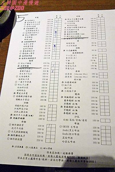 ↑雖說這家店的價格並不太親民,但這裡的菜單卻像小吃攤和台式熱炒店一樣,是自己填寫點菜的,畫好後再交給服務人員。(本文中的餐點價格為2013年當時)