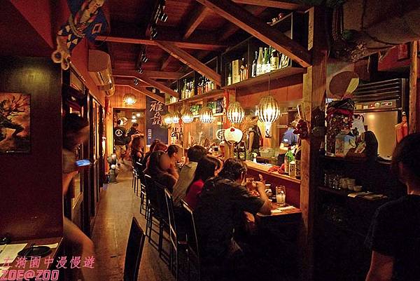↑店內長長的吧台也坐滿了人。掛著燈籠形狀吊燈的吧台也還蠻有fu~的。